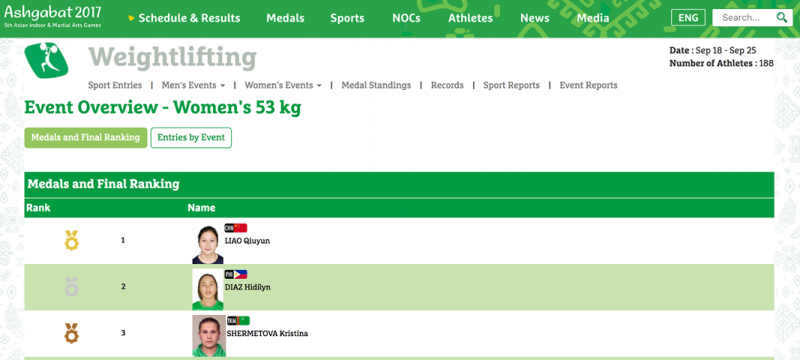 Follow the results of Team Pilipinas here: http://ashgabat2017.com/results/phi